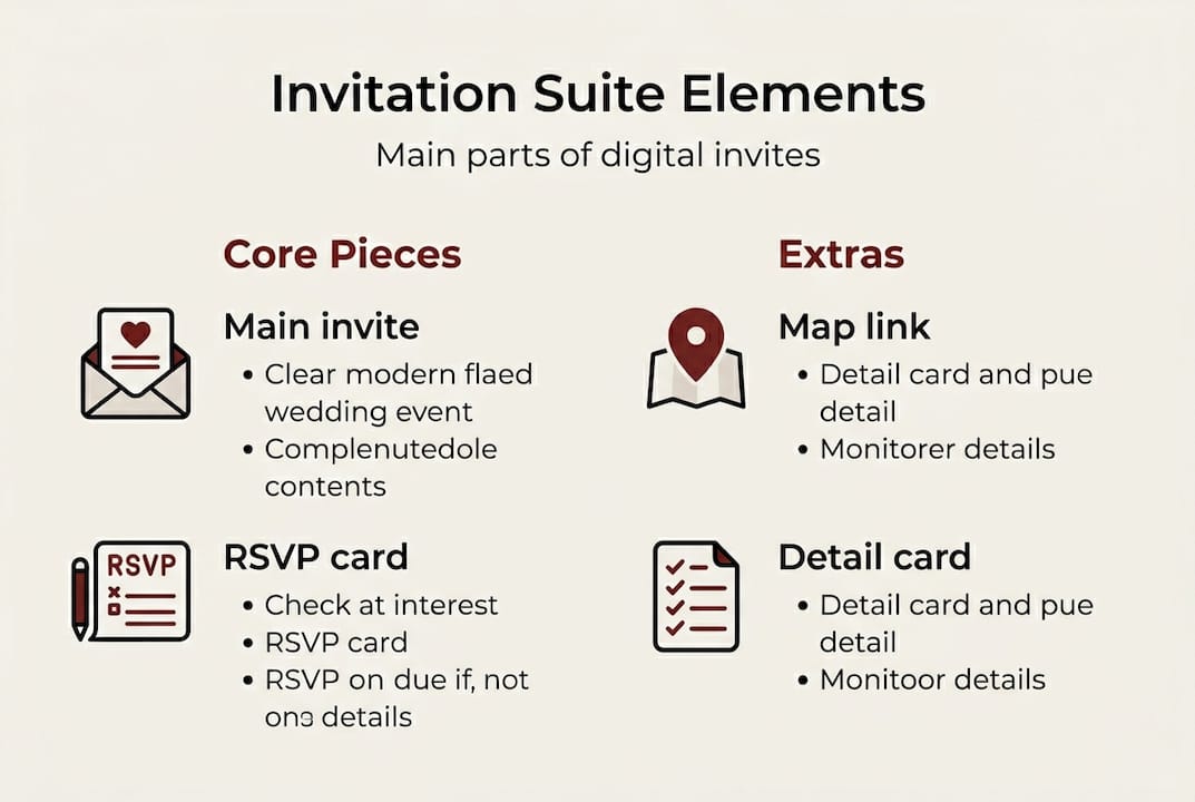 Before you can master individual terms, you need to understand the bigger picture. A wedding invitation suite is the full collection of stationery or digital pieces that together communicate everything guests need to know about your wedding.